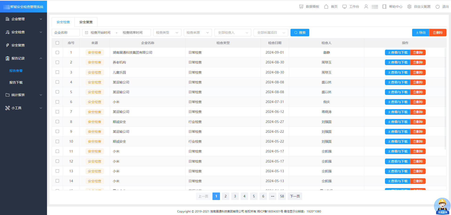 隨時(shí)查詢安全檢查記錄,直觀展示檢查企業(yè)、檢查時(shí)間、檢查人及對(duì)應(yīng)的檢查詳情有效解決紙質(zhì)臺(tái)賬儲(chǔ)存空間大容易損壞丟失等問(wèn)題,支持下載或批量導(dǎo)出報(bào)告,方便快捷。